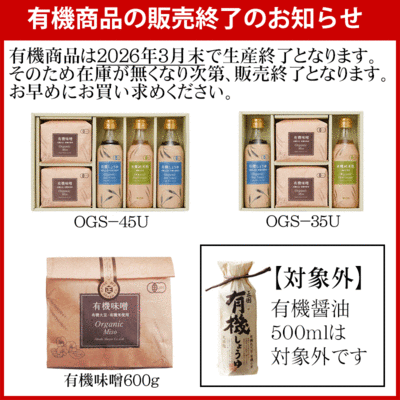 賞味期間 【有機しょうゆ】製造後24ヶ月 【有機純米酢】製造後720日 【有機味噌】製造後180日