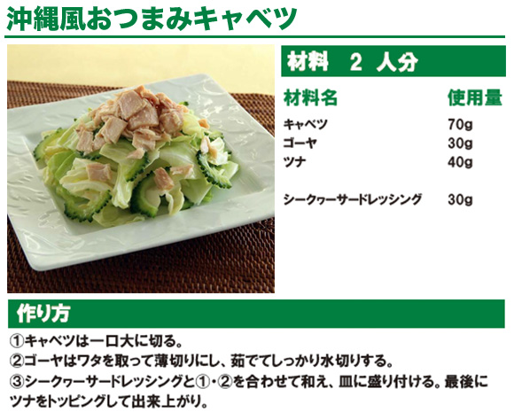 フレッシュな沖縄県産シークワーサーの爽やかな酸味が特徴のノンオイルドレッシングです。 厨房で扱いやすい1Lサイズ。
